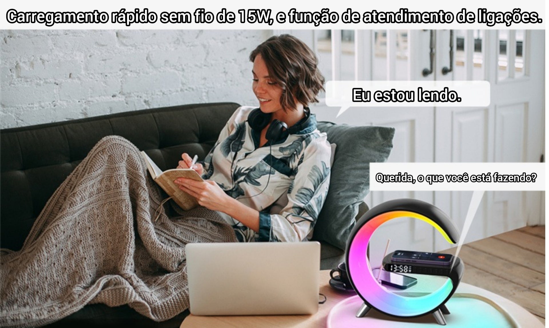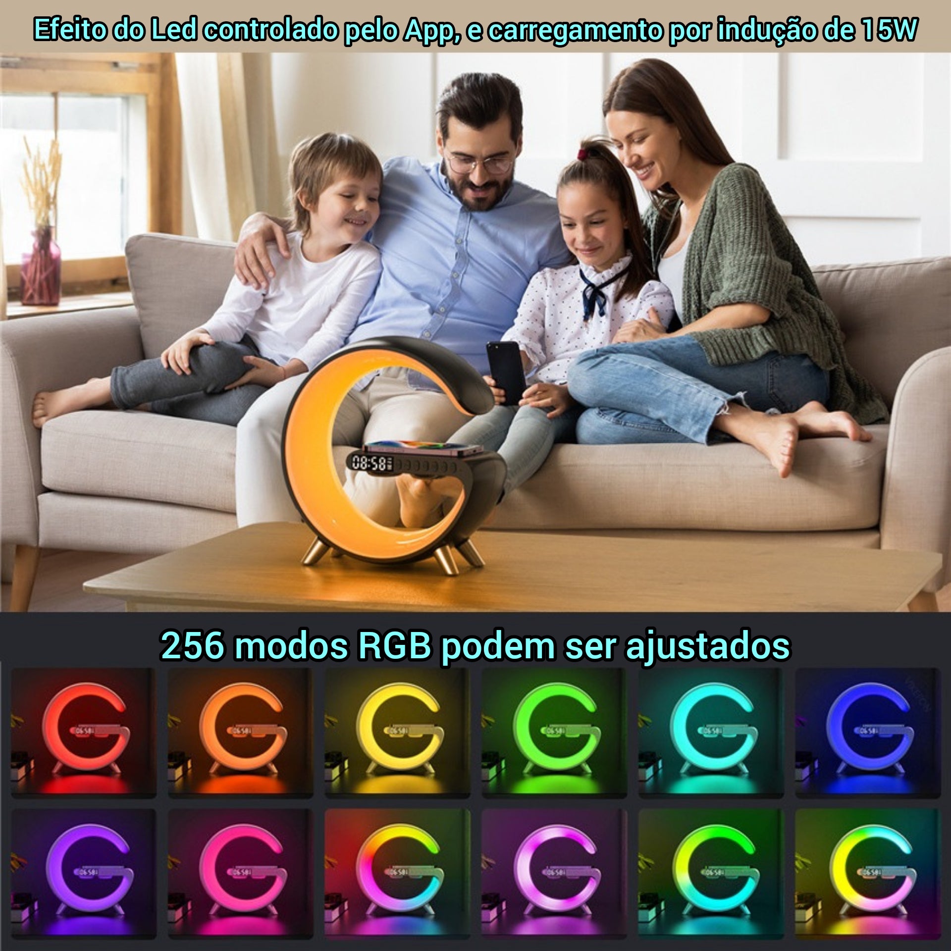 Luminária com carregamento por indução 15W multifuncional