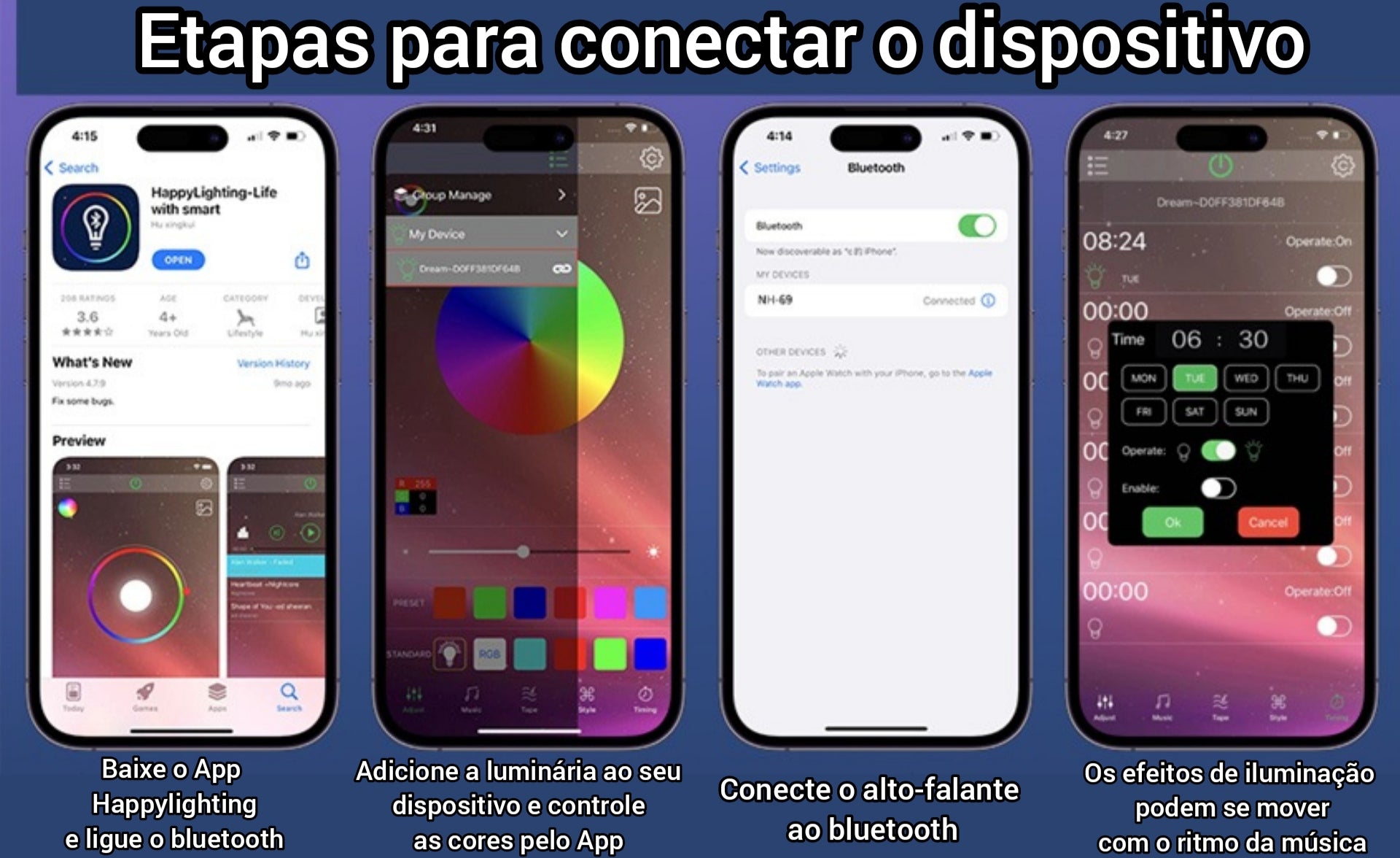 4. Leia o código QR abaixo para baixar o aplicativo. Controle e ajuste as luzes (é muito importante para definir a luz colorida).