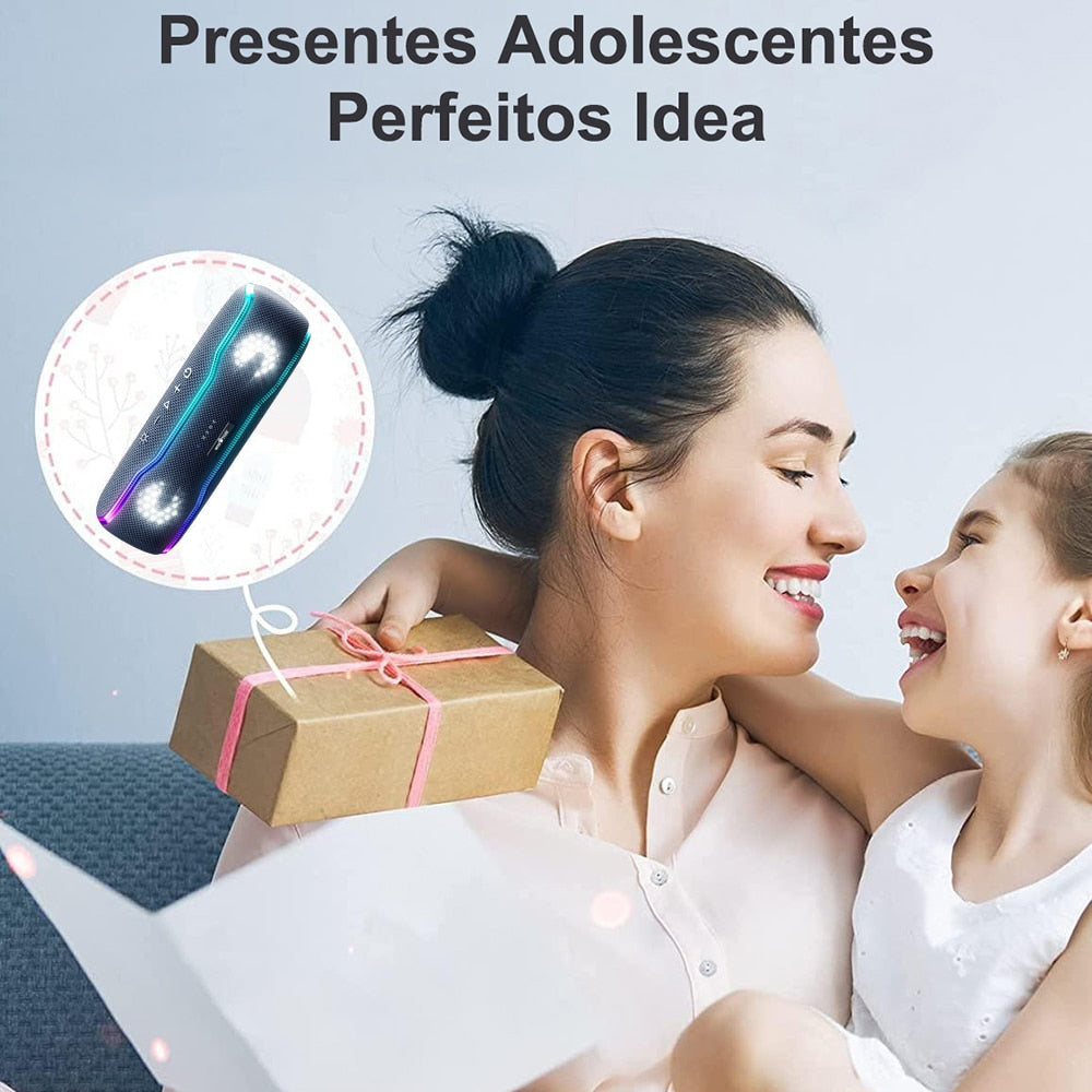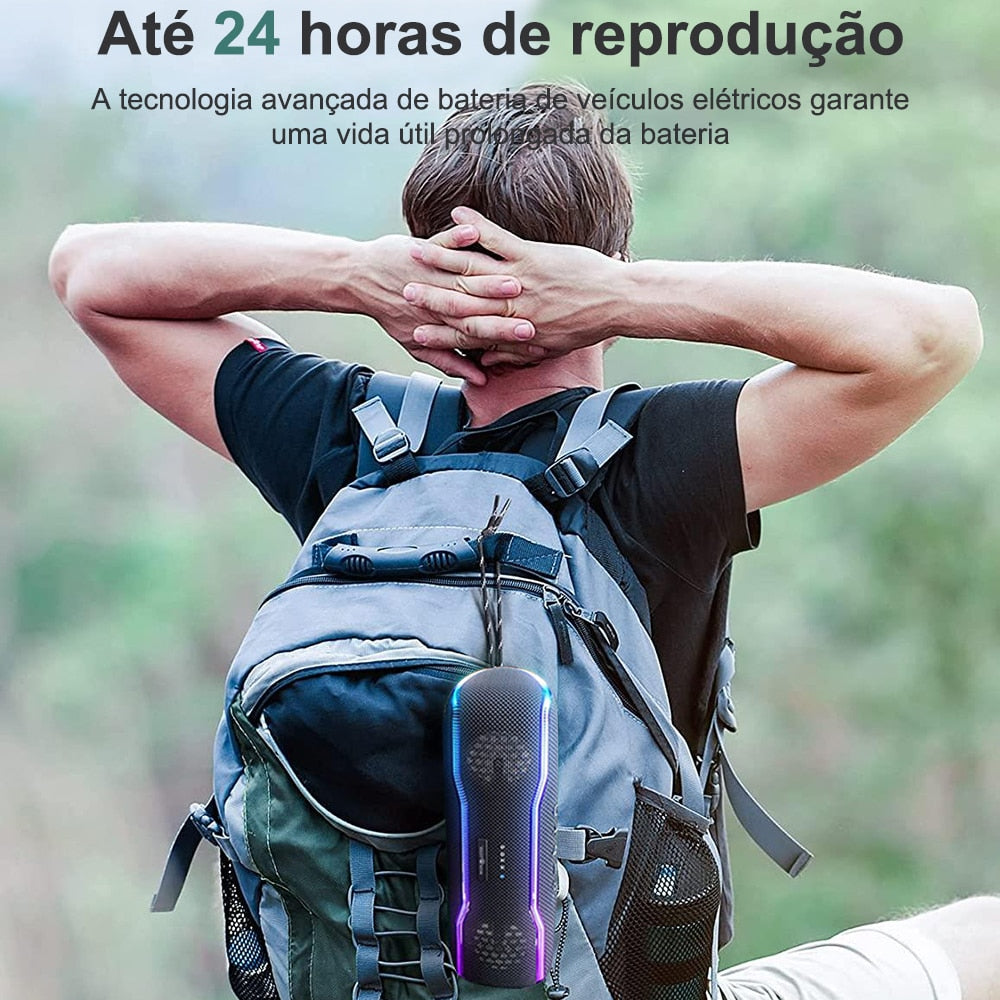 -Até 24 horas de reprodução: Dia inteiro de uso contínuo em uma única carga, você pode ligar/desligar as luzes multi-color e duas luzes de alto-falante escondidas tocando o "botão de luz" na superfície para atender às suas necessidades e prolongar a vida útil da bateria. O tempo de reprodução real varia com base no nível de volume, conteúdo de áudio e uso.